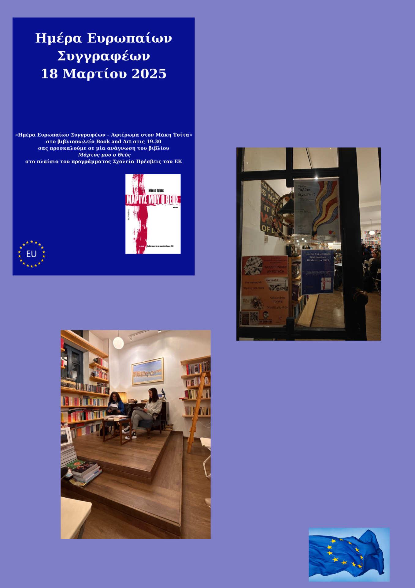 Για την ημέρα των Ευρωπαίων Συγγραφέων που γιορτάζεται την 25η Μαρτίου,