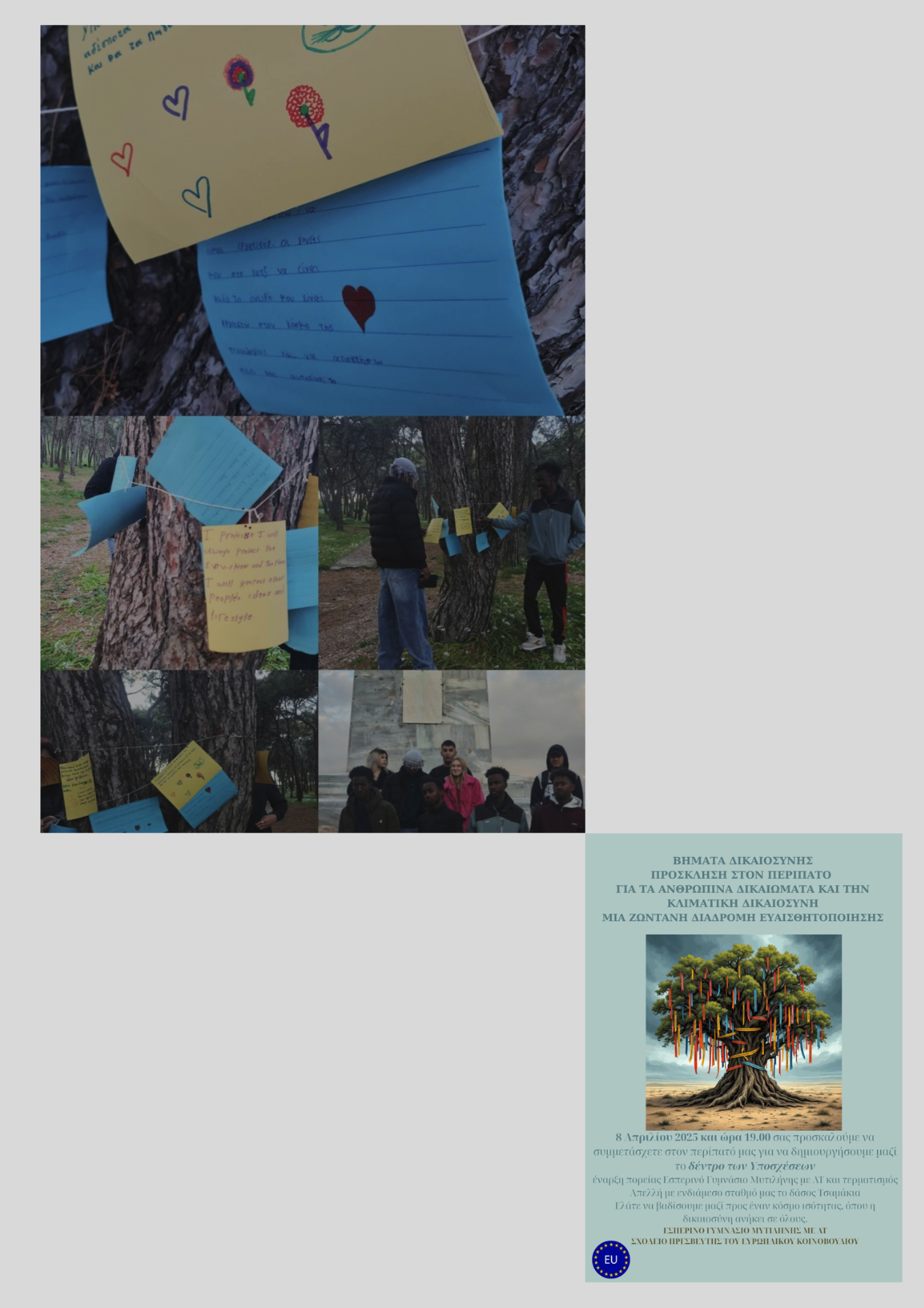 Μέσα από τη συνεργασία μας μαζί με το 4ο ΓΕΛ Μυτιλήνης και το Πρότυπο ΓΕΛ Μυτιλήνης, δίνουμε φωνή στη δικαιοσύνη, την αλληλεγγύη και την ενεργό συμμετοχή των νέων. Γιατί ο σεβασμός στον άνθρωπο αρχίζει από τον σεβασμό στη γη που μοιραζόμαστε.